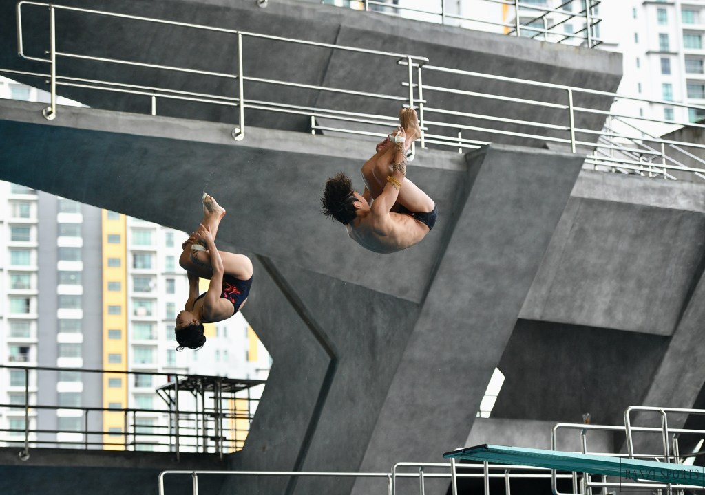 In the finals of the 303 3M Mixed Springboard Synchro event, Gabriel Gilbert Daim and Nurdhabitah Binti Sabri from Malaysia secured the Gold medal. The Silver medal was awarded to Ldinsyah Putra Rafi and Gladies Lariesa Garina from Indonesia, while Max Lee and Alycia Lim from Singapore took home the Bronze.