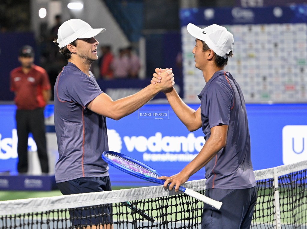 Mochizuki began to find his form towards the end of the first set, breaking Holt in the seventh game without conceding a point and then holding serve with a series of impressive winners. However, Holt, who had previously won the Nonthaburi Challenger earlier this year, responded effectively to Mochizuki’s baseline strategy, charging the net to create two set points and ultimately closing the first set at 6-3. Indian tennis legends Prajnesh Gunneswaran, Somdev Devvarman, and Vishnu Vardhan provided commentary, analyzing the action as the first set concluded after 36 minutes.