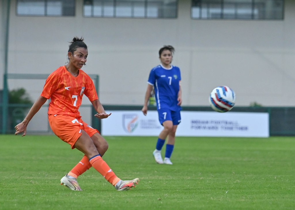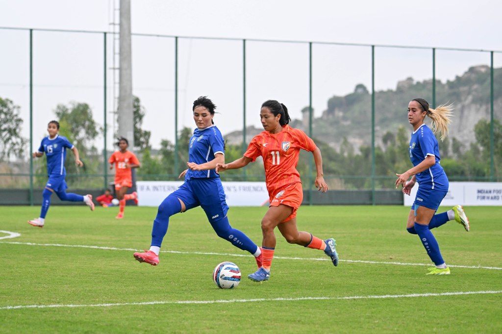India pushed hard for an equaliser with Pyari as the focal point of their attack. Phanjoubam Nirmala Devi delivered a looping cross from the right that Pyari headed towards goal, but the effort lacked power and drifted wide with about 20 minutes remaining. Later, Sumati Kumari’s low cross found Pyari again near the edge of the box, but her shot was well saved by Jonimqulova.